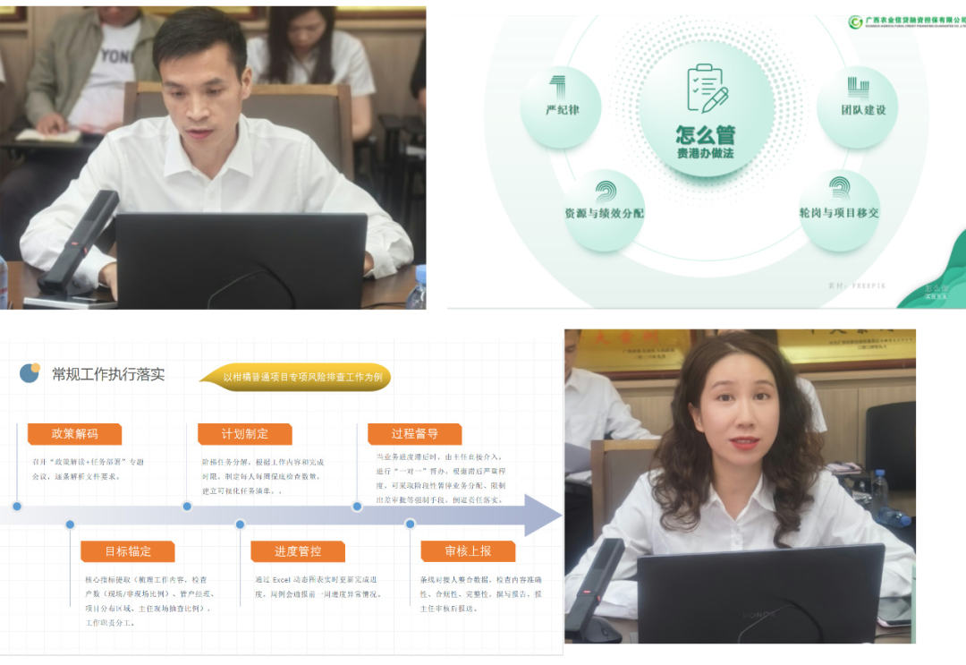 本次培训课程聚焦农担分支机构的内部基础管理,邀请了贵港市办事处主任唐万里、柳州市办事处主任李包娜作为主讲人,分享他们在办事处管理方面的实践经验。