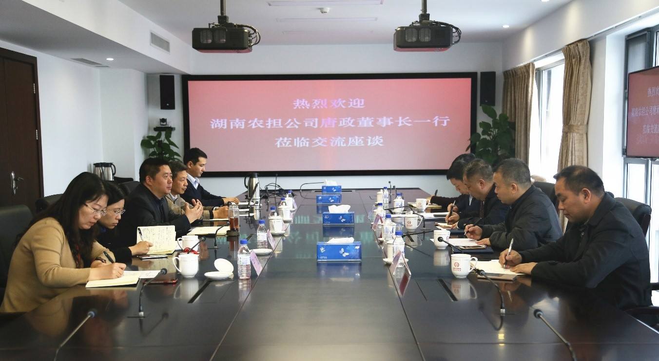 国家农担公司副总经理杨春光及相关部门负责人;湖南农担公司副总经理谭智斌、副总经理李扬及相关部门负责人参加座谈。