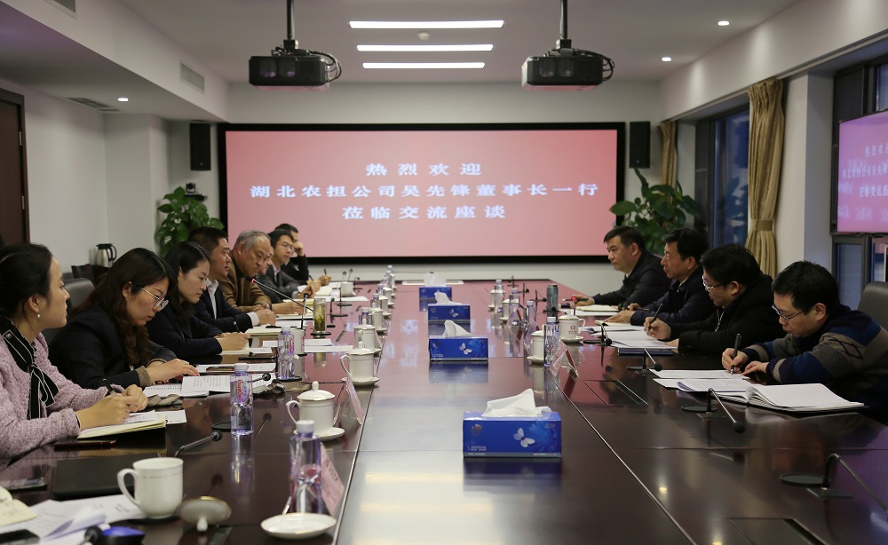 国家农担公司副总经理韩玉、副总经理兼董事会秘书刘晓宇及相关部门负责人,湖北农担公司总经理杨定华、公司领导李植及相关部门负责人参加座谈。