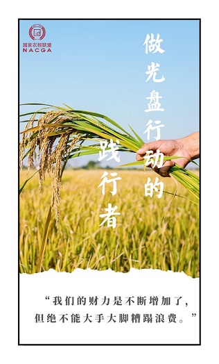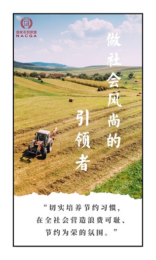 一、切实提高思想认识,做社会风尚的“引领者”。习近平总书记的重要指示,表明了我们党厉行勤俭节约、反对铺张浪费的鲜明态度和坚定决心,体现了以习近平同志为核心的党中央高度重视粮食安全、深切关心群众生活的人民情怀。作为政策性农业信贷担保体系的领头军,我们对此应有更清醒、更深刻的认识。要切实增强厉行节约、反对浪费的政治自觉、思想自觉和行动自觉,自觉把勤俭节约、艰苦奋斗的理念内化于心、外化于行,坚决破除讲排场、比阔气、搞攀比等陋习,以自身的示范行动带动更多人践行节俭节约新风尚。