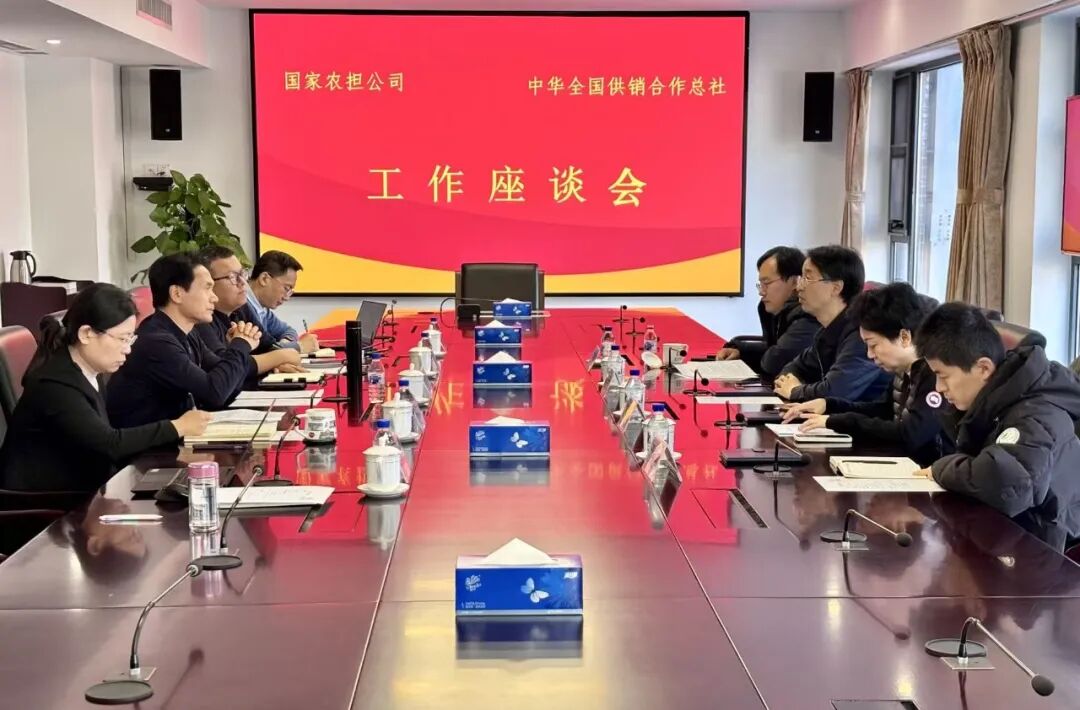 中华全国供销合作总社金融服务部副部长齐雪飞,国家农担公司业务发展部、体系服务部、风险管理部及双方相关部门、处室同志参加座谈交流。