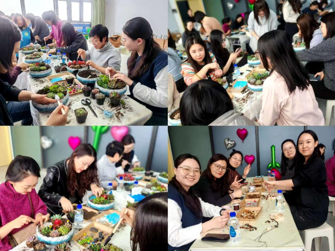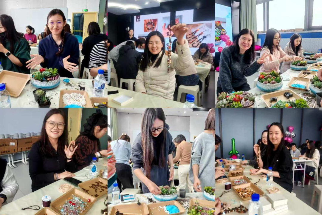 在咖啡装饰品手作环节,大家以咖啡豆、麻绳、干花等天然材料为媒介,通过粘贴、缠绕、拼接等手法,制作出独具匠心的咖啡主题装饰品。在多肉景观制作区,专业老师现场讲解了多肉植物的品种特性、养护要点以及微景观的设计构图技巧。女职工们发挥想象、巧手摆弄,将形态各异的多肉植物与精致的花器、砂石、小摆件巧妙搭配,打造出一个个错落有致、生机盎然的指尖花园。