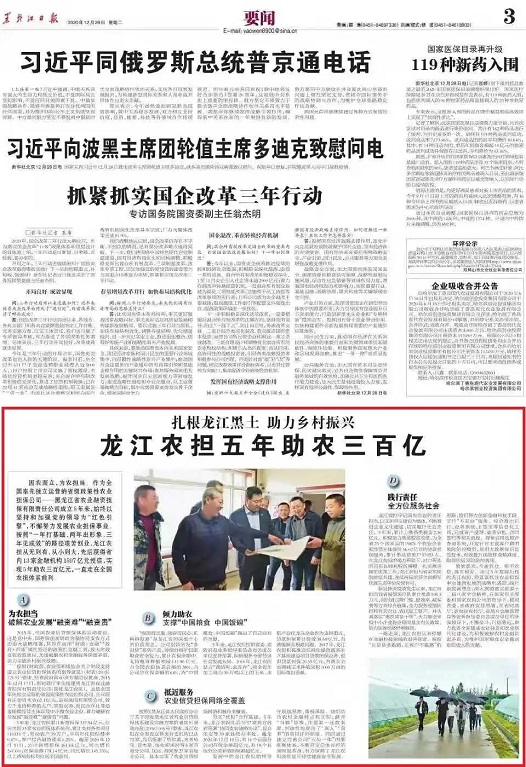 黑龙江成立5年来,始终以坚持和加强党的领导为“红色引擎”,不懈努力发展农业担保事业。按照“一年打基础、两年出形象、三年见成效”的路径艰苦创业,公司从无到有,从小到大,先后获得省内13家金融机构1597亿元授信,实现5年助农三百亿,一直走在全国农担体系前列。近日,《黑龙江日报》以“扎根龙江黑土 助力乡村振兴 龙江农担五年助农三百亿”为题,对黑龙江农担取得的业务成效进行专题报道。